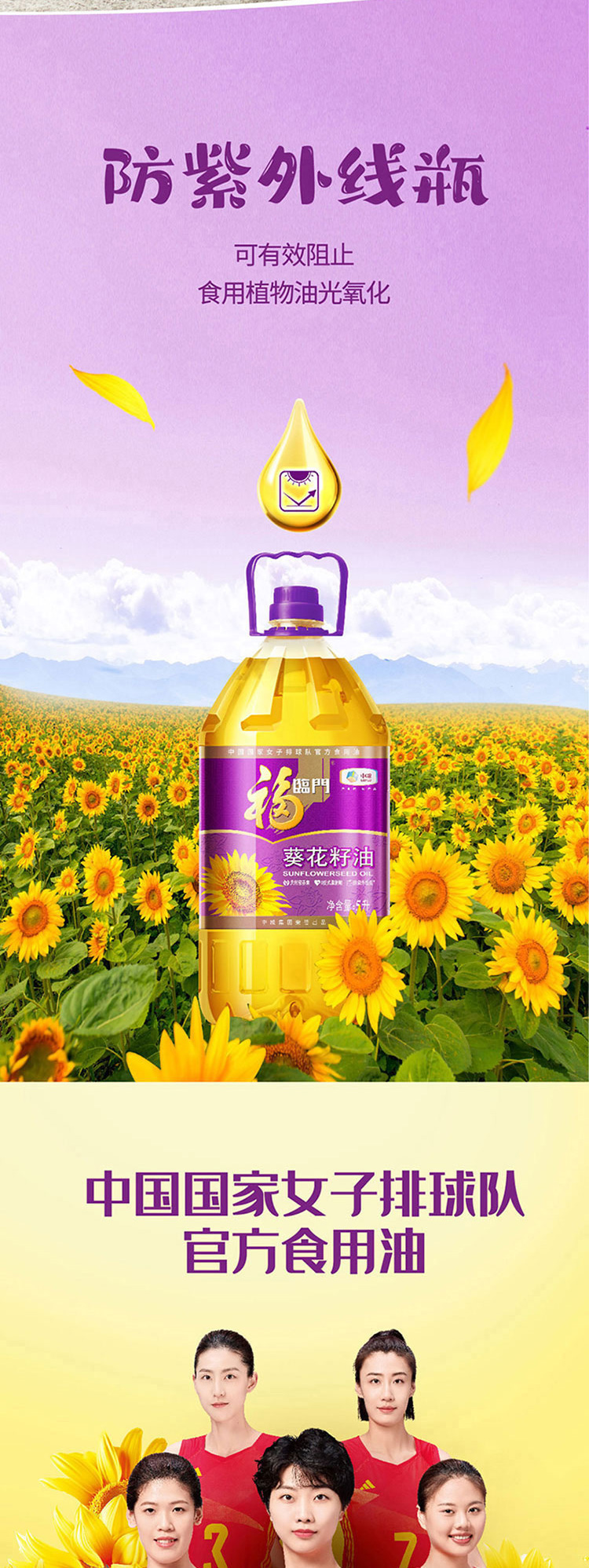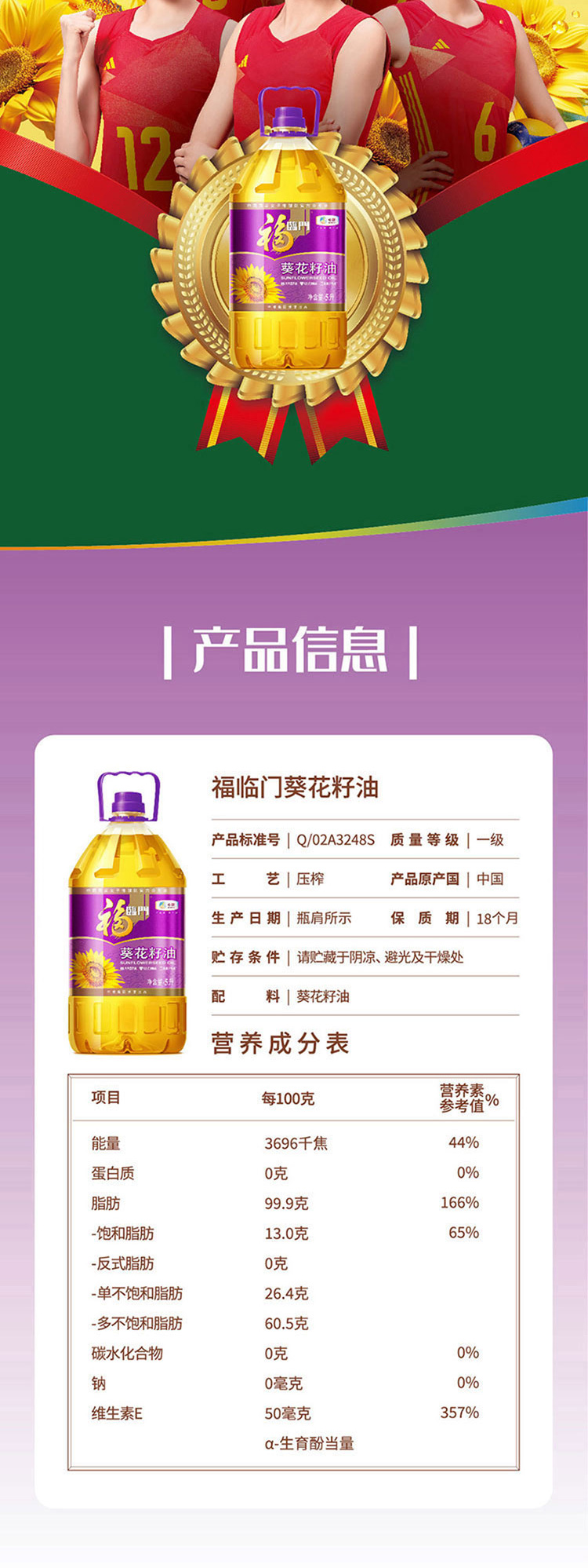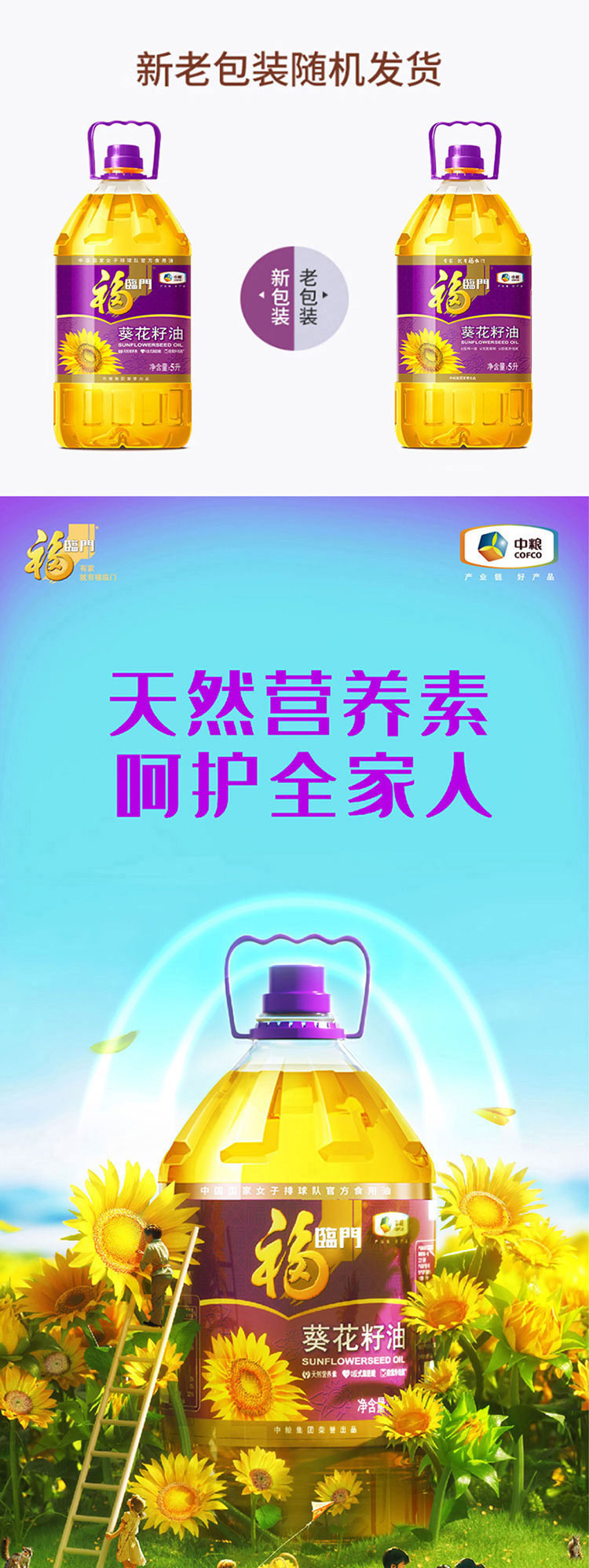 福临门 压榨一级葵花籽油 5L